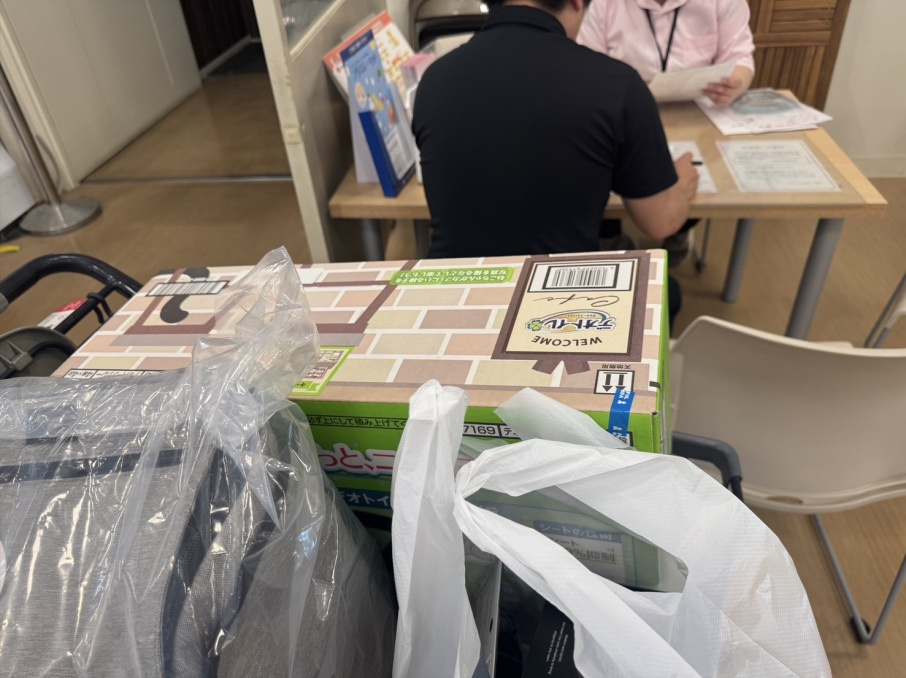 お迎えするため、おトイレやキャリーなど必要な物をそろえて・・・。(;°皿°)