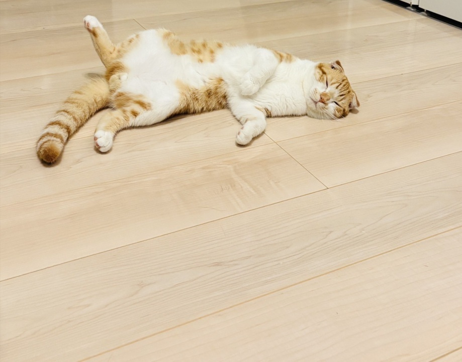 お腹を出してリラックスしています(=^・^=)
